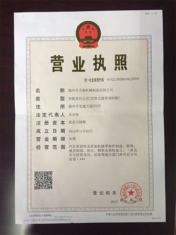 隨州市天銘機械制造有限公司地處中國專用汽車之都、炎帝神農(nóng)故里、編鐘古樂之鄉(xiāng)、歷史文化名城圣地車都—---隨州,是2015創(chuàng)立的新興企業(yè);主要生產(chǎn)汽摩配、機械設(shè)備系列鋁合金零部件的專業(yè)化公司,具有年產(chǎn)各類零部件10萬臺套的生產(chǎn)能力;公司致力于發(fā)展智能化,自動化汽車配套產(chǎn)品。目前已有智能高壓灑水炮產(chǎn)品,并獲得兩項國家專利(實用新型專利 專利號:ZL 2016 2 0962285.1 外觀設(shè)計專利 專利號:ZL 2016 3 0428566.4 )。公司著重以減輕人力操作強度為發(fā)展方向,升級產(chǎn)品,升級工藝。向技術(shù)要效益,向工藝要產(chǎn)值,向品質(zhì)要客戶!努力實現(xiàn)上中下游共贏!